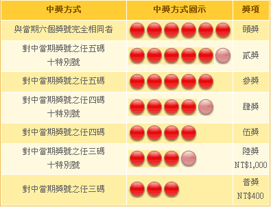 正彩: 如您選擇此玩法,且您的四位數選號與獎號之號碼及順序完全相同,即為中獎。 組彩: 如您選擇此玩法,且您的四位數選號與獎號之號碼完全相同(不計順序),即為中獎。組彩因開出之四位數獎號中號碼重複之情形可分為下列四種: 4組彩:獎號中有三個號碼相同者,例如1112。 6組彩:獎號中有兩對號碼相同者,例如1122。 12組彩:獎號中有二個號碼相同者,例如1123。 24組彩:獎號的四個號碼皆不相同,例如1234。